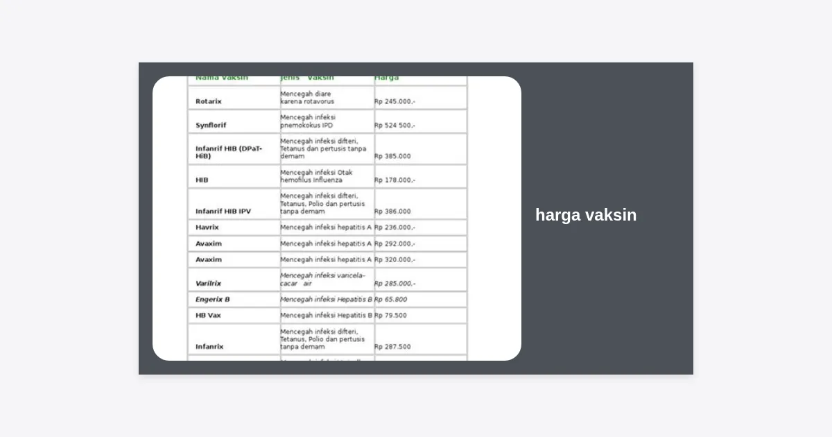 Harga Vaksin Lengkap 2024: Panduan Biaya Terkini dan Rekomendasi Imunisasi